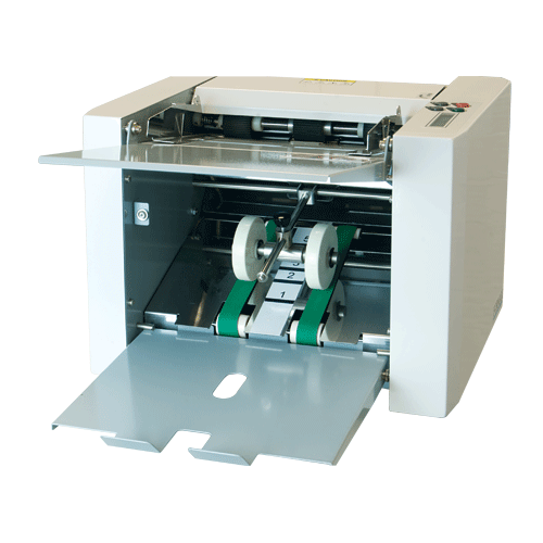 You could sum up the Formax FD 300 desktop office folder as a low-volume machine that finishes your folding projects in record time. It produces 7,400 documents per hour, and it can process 11-inch to 14-inch documents. The FD 300 performs four popular folds that include Z, C, Half and Double Parallel.