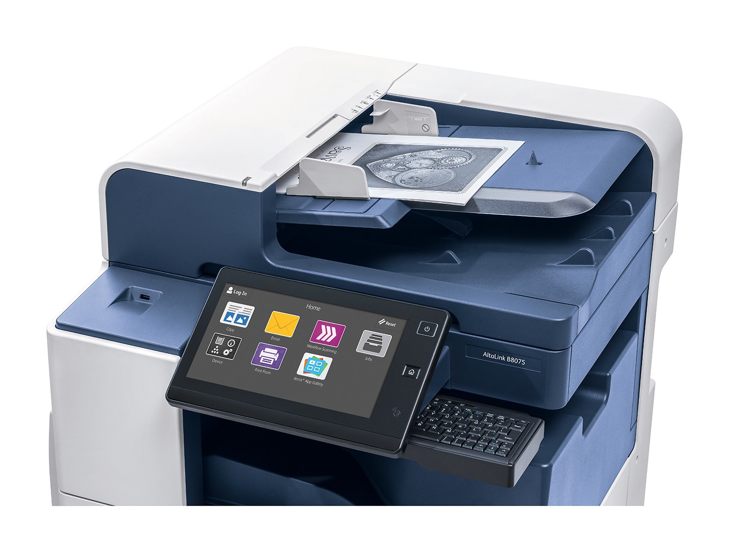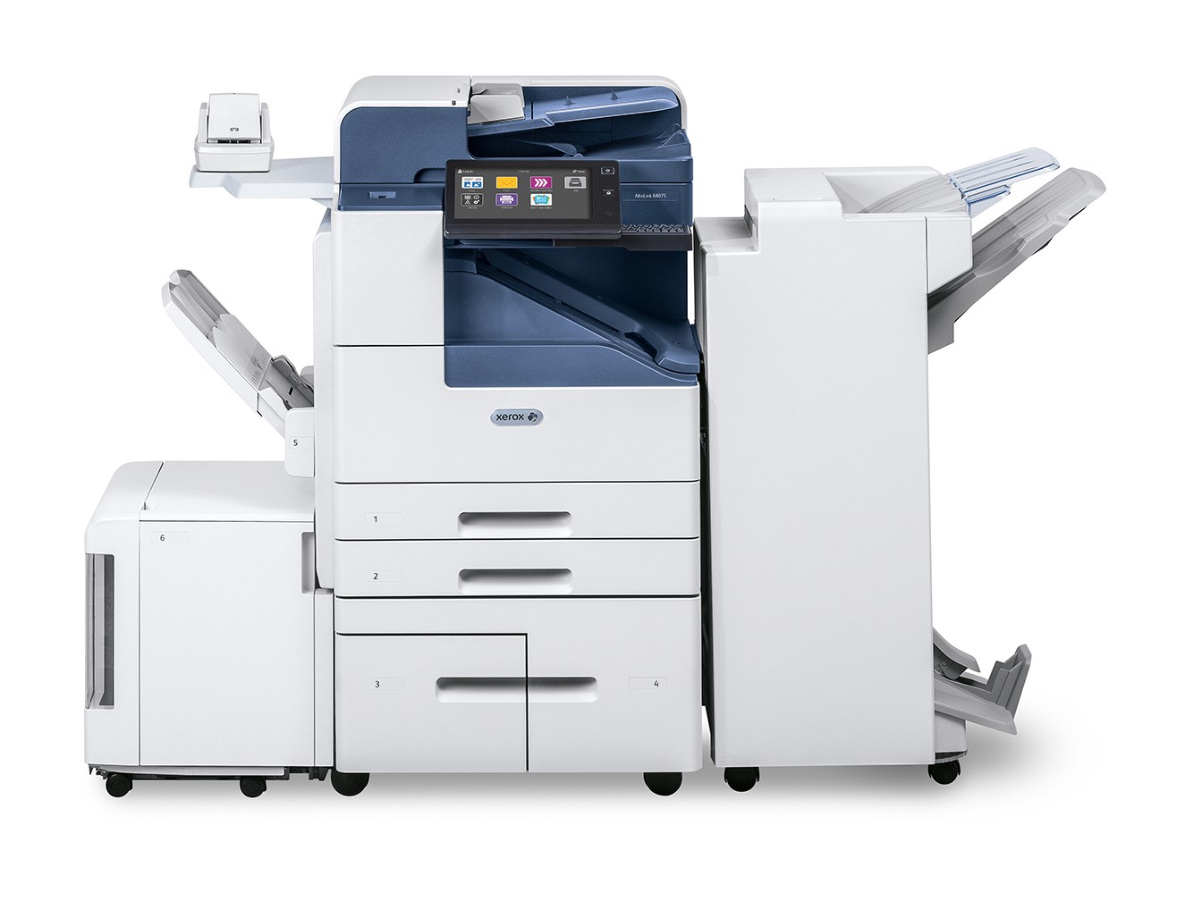 This multifunction printer was configured to include a 1.8GHz processor, 4 GB of memory and 250 GB of hard drive. There is also a 10.1′′ color touchscreen with a touch/swipe user interface similar to handheld devices. It also provides access to the Xerox App Gallery, so users can download apps to help customize single touch for regular tasks.